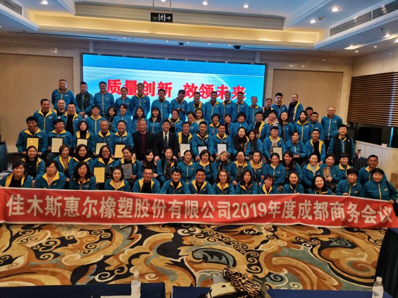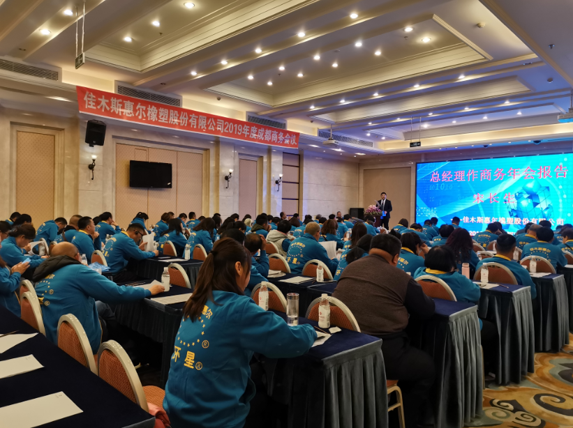 2019年11月25日,值此辭舊迎新之即,佳木斯惠爾橡塑股份有限公司2019-2020年度商務(wù)會(huì)議在四川成都圓滿召開,來(lái)自全國(guó)范圍的100多家經(jīng)銷商代表歡聚一堂,共謀發(fā)展。會(huì)議總結(jié)了2019年?duì)I銷工作,直面矛盾問(wèn)題,科學(xué)預(yù)判形勢(shì),就2020年?duì)I銷工作進(jìn)行了部署和落實(shí),會(huì)場(chǎng)充滿熱烈喜慶、奮發(fā)向上的氣氛。